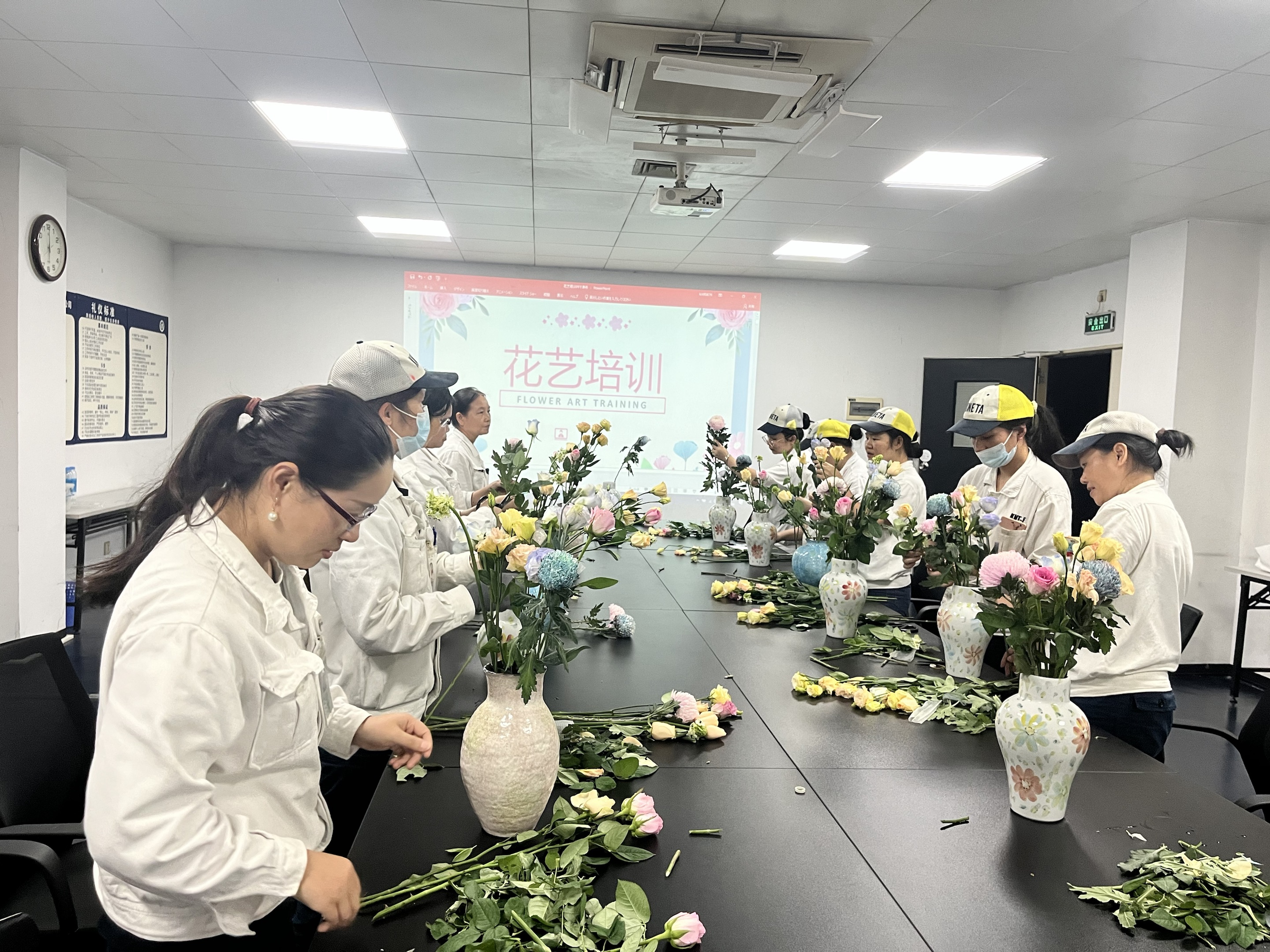 为丰富员工业余生活,10月30日,工会组织了一场女员工温馨雅致的插花艺术活动。